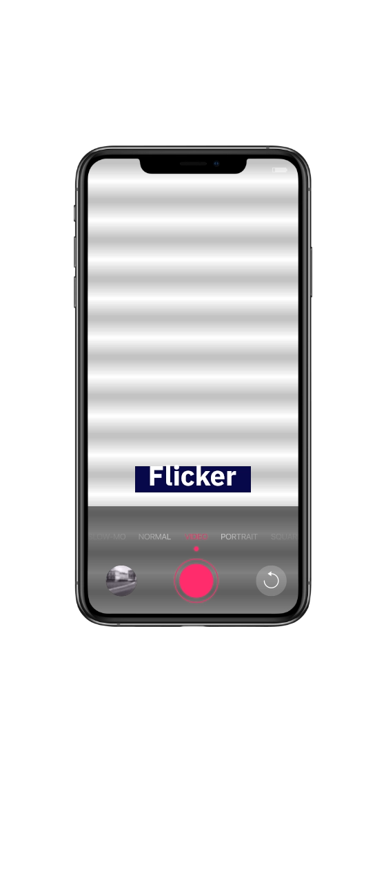 One way to identify flicker is to record the lamp or bulb in question with your mobile phone. If you move your mouse over the mobile phone in the image below, you will see a familiar pattern. This is the Flicker effect.