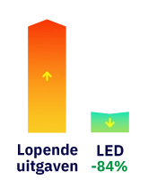 In dit geval bedraagt de vermindering van het elektriciteitsverbruik voor verlichting met de overschakeling op LED meer dan 50%, wat, rekening houdend met de dagelijkse gebruiksuren, een aanzienlijke besparing kan betekenen van meer dan 129,24 euro per maand (huidige prijs van 0,30 euro per kWh).