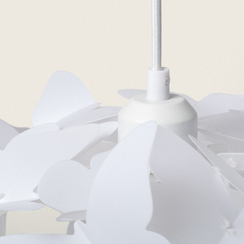 Deze lamp heeft een lampenkap van PE-vlinders, een materiaal dat zeer goed bestand is tegen invloeden van buitenaf en dat zeer gemakkelijk schoon te maken is. De zwarte en witte kabel geeft het een leuke touch die het geschikt maakt voor kinder- en jeugdruimten.