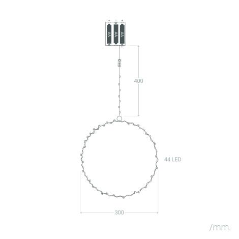 Um diesen Ring ist eine dekorative Girlande aus 44 LEDs gewickelt, die mit drei AA-Batterien betrieben werden. Sie ist ausschließlich für Innenräume konzipiert und diese können so unterschiedlich sein wie die verschiedenen Räume eines Hauses, eines Restaurants, einer Bar oder eines Geschäfts.
