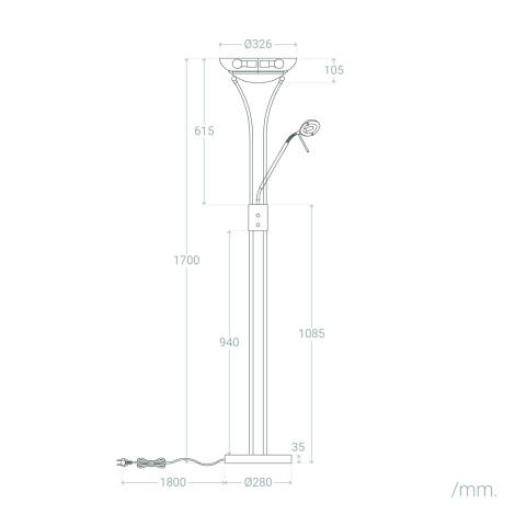Světlo vyzařované touto lampou bude záviset na vybraných LED žárovkách E9 a E27. Můžete si tak vybrat mezi teplým a útulným světlem a zároveň neutrálním světelným bodem, který vám umožní číst nebo pracovat bez únavy očí. Díky svému stylu a dvojímu využití je ideální do salonků, recepcí, čekáren, hotelů a čtecích koutků.