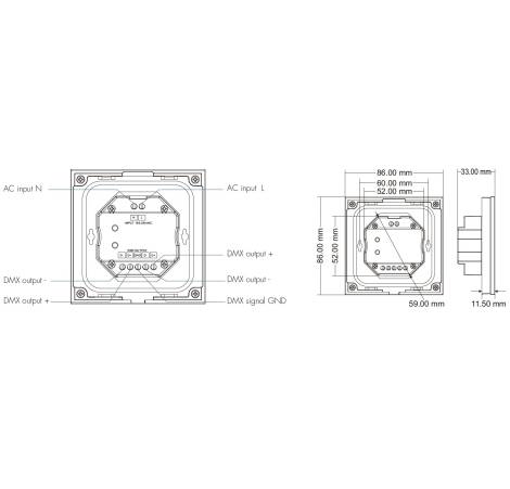 Der Dimmer Master DMX zeichnet sich durch sein hochempfindliches, robustes Touchpanel aus Glas aus und bietet ein außergewöhnliches Benutzererlebnis mit sanften und präzisen Farbeinstellungen über seinen Touch-Slider. Die Bedienung ist intuitiv und reagiert sofort, wenn die gewünschte Beleuchtung ausgewählt wird. Berührungstasten mit LED-Anzeigen erleichtern die Sichtbarkeit und die Verwendung bei schwachen Lichtverhältnissen. Dieses Gerät ist ideal für private und gewerbliche Anwendungen, bei denen eine präzise Beleuchtungssteuerung erforderlich ist.