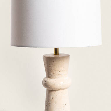 Die Tischleuchte Travertino Bittor verfügt über einen Lampenschirm aus hochwertigem Stoff, der das Licht abmildert und eine warme und gemütliche Beleuchtung erzeugt, perfekt für Ihre Lesemomente oder um eine entspannende Atmosphäre zu schaffen. Darüber hinaus gewährleistet ihre solide Struktur Langlebigkeit und Widerstandsfähigkeit, sodass jahrelange sorgenfreie Nutzung garantiert sind.