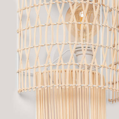 Die Wandleuchte geflochtenes Papier Masego L ILUZZIA aus geflochtenem Papier ist die perfekte Ergänzung, um dem Raum, in dem sie aufgestellt wird, einen warmen und stilvollen Touch mit einem Lichtpunkt zu verleihen. Das Design aus geflochtenem Papier passt zu mediterranen, Boho-Chic, natürlichen oder sogar afrikanischen Stilen.