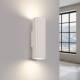 La structure de l'applique se distingue par sa finition ondulée qui lui confère non seulement un aspect distinctif mais facilite également son entretien. Ses lignes verticales créent un effet visuel dynamique, renforçant le caractère architectural de la pièce. Elle est disponible en plusieurs couleurs (blanc, noir, rouge ocre et vert) afin de faciliter son intégration dans différents styles décoratifs.