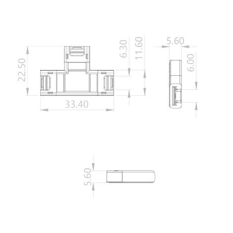 Avec le connecteur HIPPO de type "T", vous pouvez connecter rapidement et facilement trois rubans LED monochromes de 12 ou 24V CC d'une largeur de 8 mm.