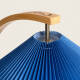 Ce lampadaire est doté d'un corps en bois, travaillé avec des techniques classiques de cintrage pour obtenir la courbe caractéristique de son design souhaité. Ce corps est assemblé à une base circulaire, fabriquée avec le même bois que le corps, qui apporte le support et la stabilité au lampadaire. En outre, nous avons l'abat-jour, fabriqué en tissu renforcé, qui rappelle les techniques de l'origami dans le design final.