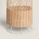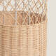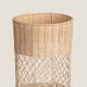 Ce lampadaire est constitué de fines cordes de rotin entrelacées pour former cette tapisserie qui enveloppe une structure métallique blanche, donnant naissance à une forme cylindrique finale. Le rotin ainsi travaillé rappelle les meubles classiques en osier qui ont été et sont encore très courants sur les terrasses méditerranéennes. Il vous sera très facile de l'intégrer dans l'espace souhaité tel que salons, salles à manger, chambres, restaurants, locaux commerciaux, etc…
