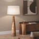 Le Lampadaire Bois Zeil Rajesh ILUZZIA se distingue par son design sculptural et chaleureux, ce qui fait de lui une pièce décorative unique pour les intérieurs. Fabriqué en bois tourné naturel avec une finition artisanale, il présente une base conique imposante qui donne du caractère et de la personnalité à n'importe quelle pièce, tandis que son abat-jour en textile blanc adoucit la lumière pour créer une atmosphère chaleureuse.