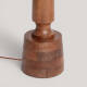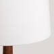 Sa structure en bois massif travaillé à la main s'élève sur une haute tige élancée et légèrement effilée, posée sur un socle robuste qui lui confère équilibre et stabilité. La finition révèle le grain naturel du bois, mettant en valeur les textures et les nuances qui le rendent unique. Chaque pièce est différente, avec des imperfections inhérentes à la matière première qui n'enlèvent rien à sa valeur mais confirment plutôt son origine artisanale et son caractère exclusif. L'abat-jour tronconique en tissu blanc apporte une légèreté visuelle et complète harmonieusement l'ensemble.