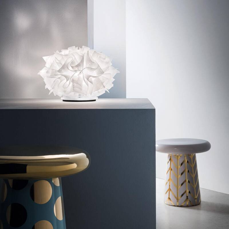 La Lampe à Poser Veli Table Couture SLAMP a un design moderne et exubérant. Il s'agit d'un design fait main par la prestigieuse marque italienne "SLAMP", une société dédiée à l'éclairage design.