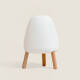 Elle a une autonomie allant jusqu'à 20 heures, elle est résistante à l'eau et la poussière. Modèle trépied avec des pieds en bois. La luminosité peut être réglée entre 100%, 50% et 25%.