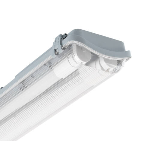 La Réglette Étanche pour deux tubes LED 1200mm PC/PC Connexion Latérale, vous permet d'installer deux tubes T8 et de les protéger de la poussière et de l'humidité.