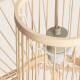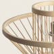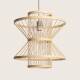 Cette suspension est composée d'un abat-jour dont la forme et la structure sont en bois. Le cylindre intérieur et les deux parties coniques extérieures sont constitués de fines tiges de bambou, assemblées manuellement une à une, rappelant ainsi les meubles de terrasse typiques de la côte méditerranéenne. Une autre partie à souligner est le câble, la rosace et le support de lampe de couleur kaki qui la maintiennent, donneront une touche amusante et originale à l'espace souhaité.