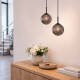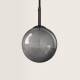 La Suspension Cristal Kubad sera parfaite dans les espaces de style moderne ou minimaliste. Son design se compose d'un abat-jour suspendu en verre de finition gris fumé, avec une touche de reflet et une forme sphérique. Cet abat-jour est suspendu à une simple douille métallique à la finition noire mate, ainsi qu'à la rosace et au câble en textile noir.