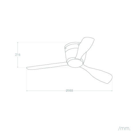 Le corps du ventilateur est en acier et polycarbonate, ses 3 pales en polycarbonate et son diffuseur en verre opale, en font une combinaison qui apporte légèreté, robustesse et versatilité. Il dispose d'une télécommande permettant de choisir entre 5 vitesses différentes. De plus, comme c'est le cas pour nos produits, il utilise des LED, ce qui permet de réaliser d'importantes économies d'énergie par rapport aux luminaires traditionnels. La température de couleur du luminaire est en blanc chaud.