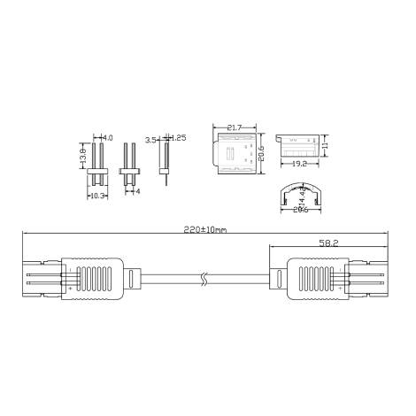 With the double connector with cable you can quickly and easily connect two 220V AC Autorectified SMD Monochrome LED Strip 12mm Wide.
