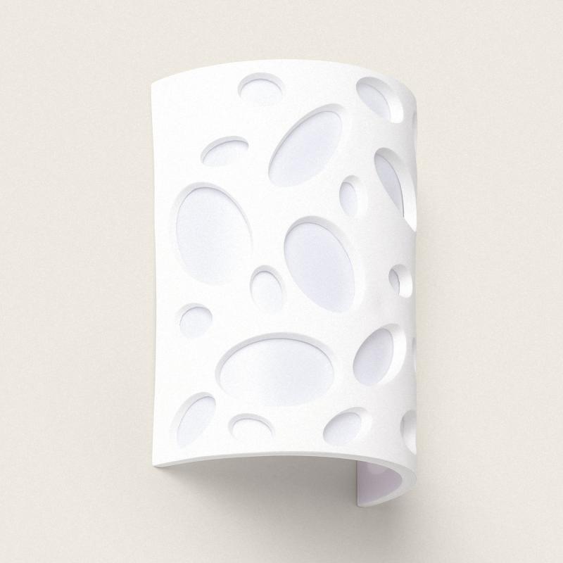 Realizzata in gesso di alta qualità, presenta un design unico con fori strategicamente posizionati, attraverso i quali filtra la luce, creando un effetto visivo incantevole. Ideale per l'uso in interni, questa applique aggiunge un tocco distintivo e moderno a qualsiasi spazio. La sua illuminazione morbida e diffusa offre un'atmosfera accogliente ed elegante, perfetta per mettere in risalto la bellezza di qualsiasi ambiente.