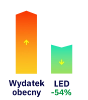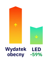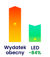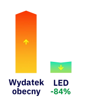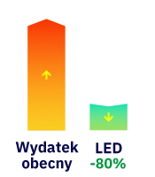Wysoka wydajność diod LED w porównaniu z technologiami konwencjonalnymi pozwala nam zaoszczędzić prawie 80%, czyli około 400,98 zł miesięcznie (przy obecnej cenie 0,74 zł za kWh), na zużyciu energii na oświetlenie.