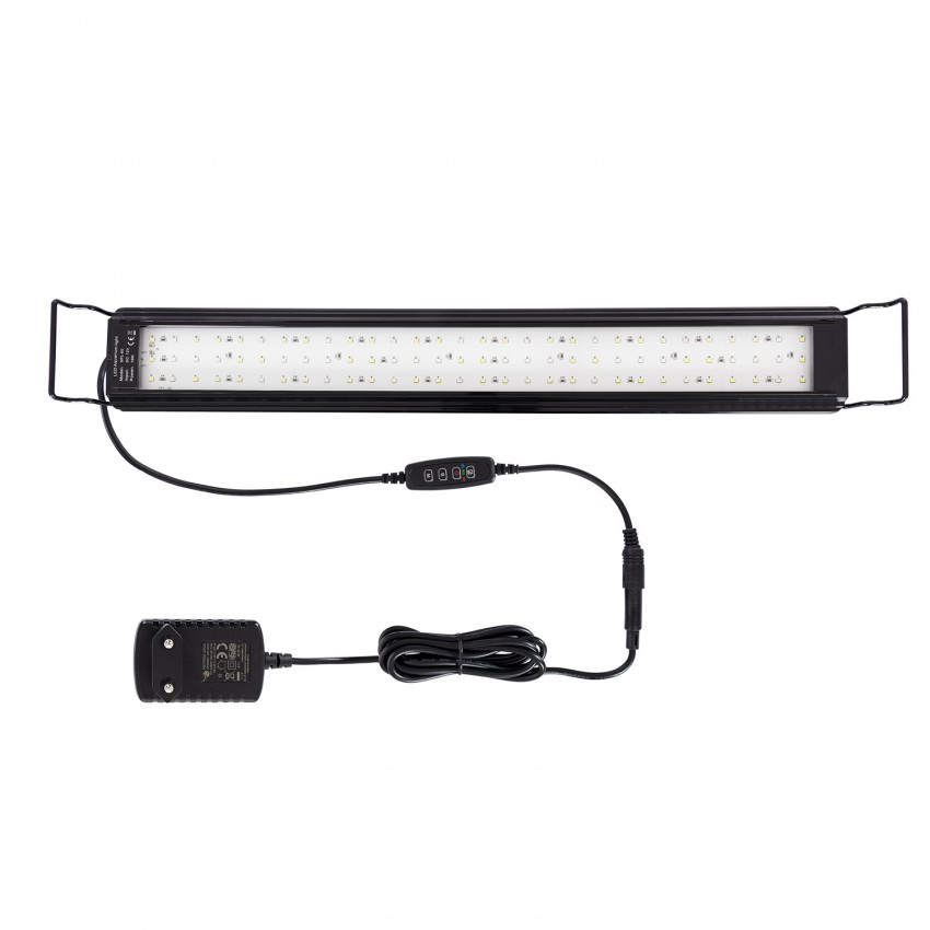It is integrated into the top part of the fish tank by means of two brackets, which can be removed and adjusted to the display according to the size of the aquarium from 280mm up to 450mm. In addition, its structure is made of aluminium and has a subtle design. It is suitable for freshwater and saltwater aquariums. It does not require any extra maintenance and due to its IP66 rating, it is resistant to possible water jets.