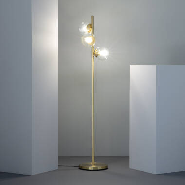 The Otos Metal and Glass 3 Spotlights Floor Lamp has an elegant and sophisticated design. The light emitted by this lamp will depend on the E27 LED bulb that we install. This way we can choose a warm, cold or neutral light depending on the atmosphere we want to create. An interesting option is to choose some of the bulbs in warm white, as they allow you to create a cosier atmosphere. The lamp includes an EU plug that allows it to be installed anywhere easily and quickly and also includes a cable switch and an electric cable with a black textile cover that enhances and contrasts with the colour of the lamp.