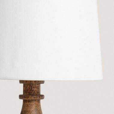 This lamp is made up of two parts, a base, hand-turned, made of mango wood and a cotton lampshade with reinforced base. Due to the good quality of the raw material and the handcrafted methods used for its elaboration, you will not find two identical ones, thus obtaining exclusivity. Its design highlights the sustainability of mango wood, as it is only cut when the trees are no longer able to provide fruit, thus reducing the danger of extinction of some species.