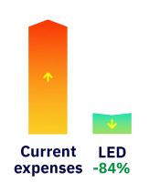 In this case, with the changeover to LED, the reduction in electricity consumption for lighting is over 50%, which, taking into account the hours of daily use, can mean a significant saving of over £77.54 per month (current price of £0.18 per kWh).