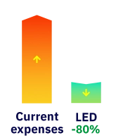 The high efficiency of LEDs compared to conventional technologies allows us to save almost 80%, around £97.53 per month (current price of £0.18 per kWh), on lighting consumption.